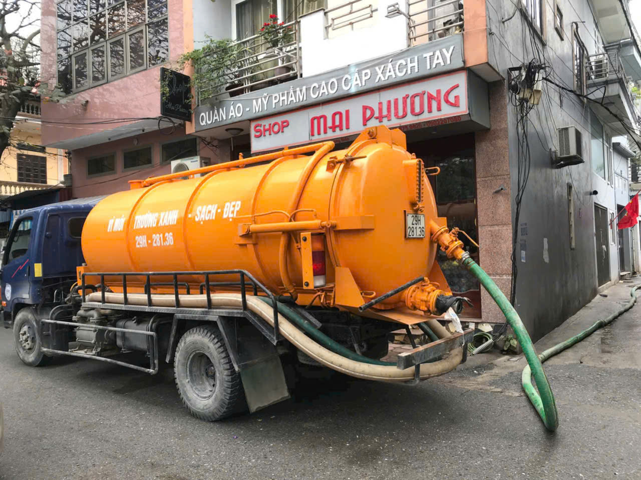Hút bể phốt, hút hố ga, hút bùn vi sinh cho tòa nhà, xí nghiệp với hệ thống xe vòi dài tới 500m.